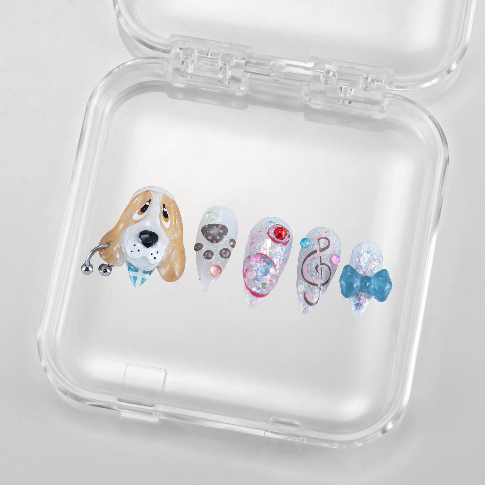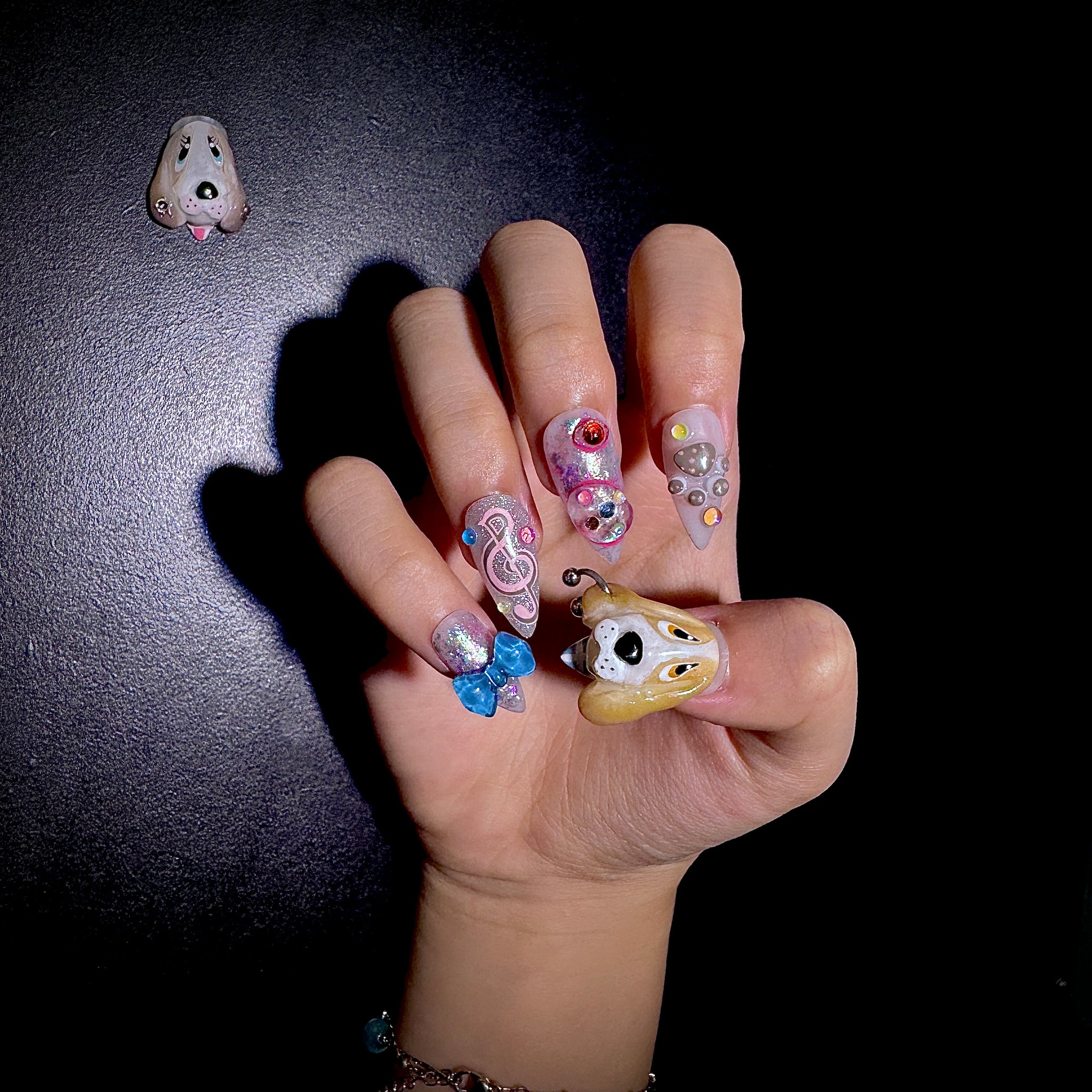 Who on earth invented 3D dog nail art? They turn puppies into mini versions and “settle” them on the nails. Paired with sparkling rhinestones and tiny music notes, it’s both sweet - cool and healing. Every time I look at my nails, I can’t help but want to rua them. It feels like there’s a whole cute universe in the palm of my hand.