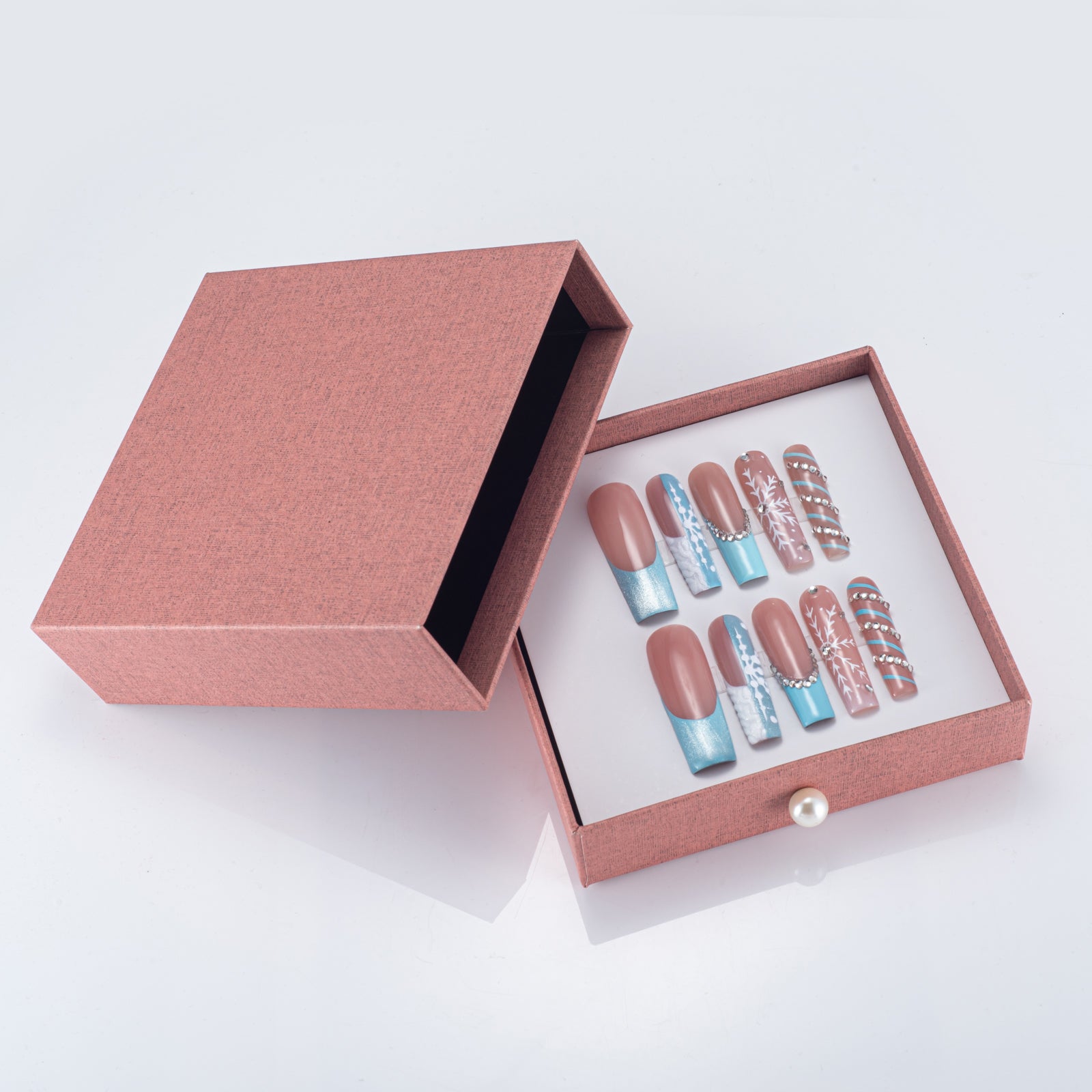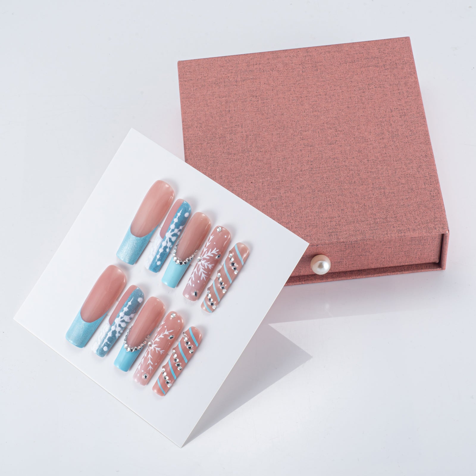 Every "Icy Blue Snowfall" set is delivered in a Signature Gift Box and includes a professional Application Tool Kit: