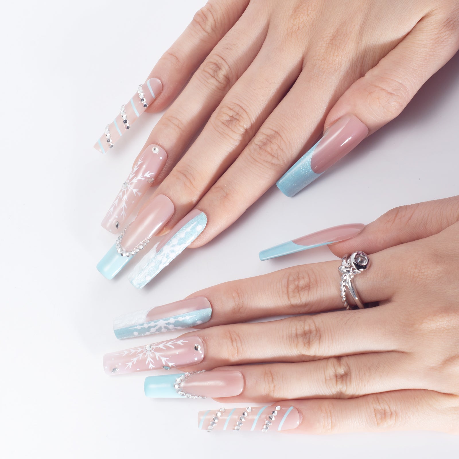 - Artisan Hand-Painted Detail: Features intricate linework and gradient icy blue tones, meticulously hand-painted by expert nail artists.