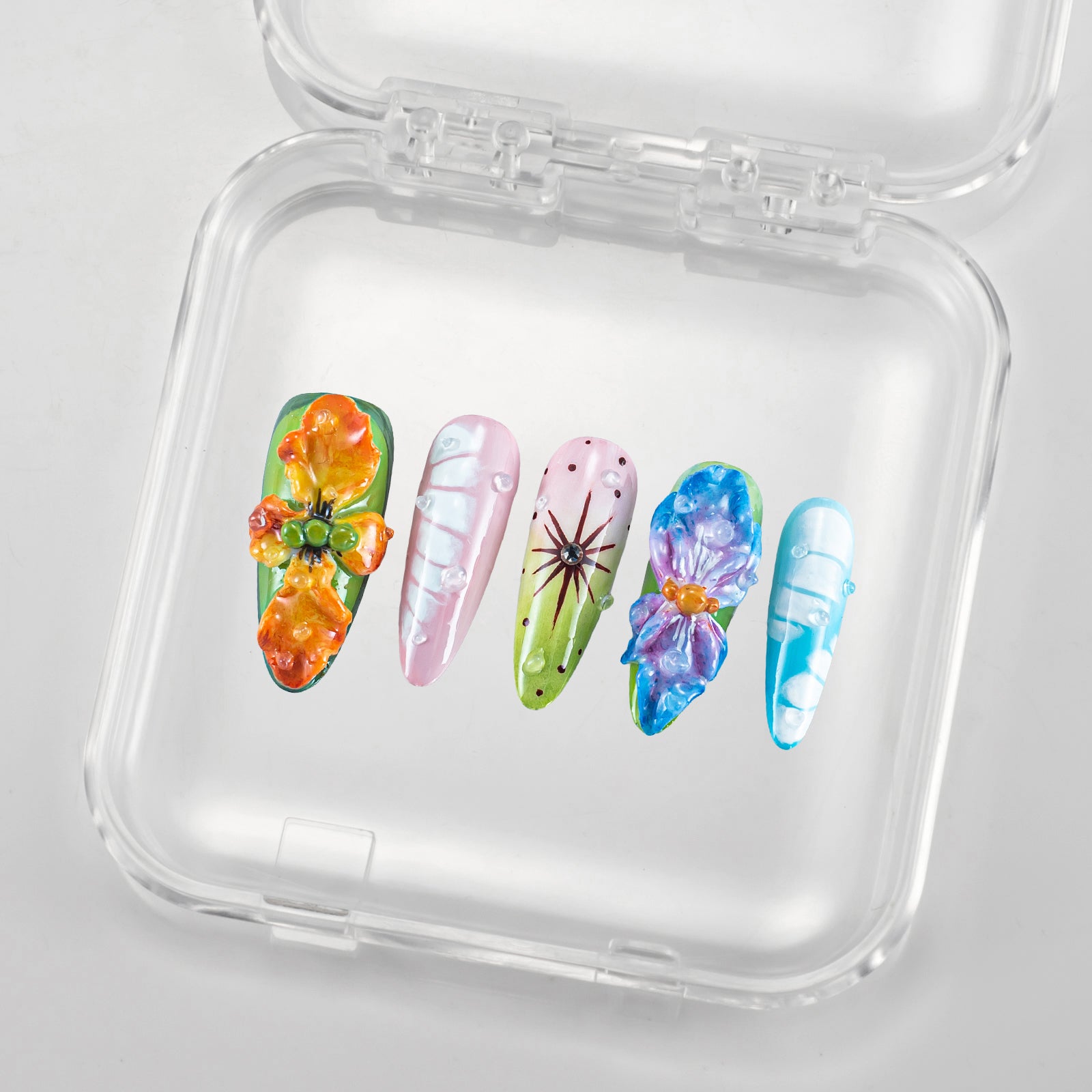 雨林微风缠绕着手绘花瓣,轻柔飘过你的指甲,仿佛一朵朵娇艳的花朵从丛林深处逃逸而出。每一抹,都凝固着狂野而短暂的瞬间。戴上它,你的指尖便化作一首鲜活的雨林诗篇,永远绽放,永不休止。